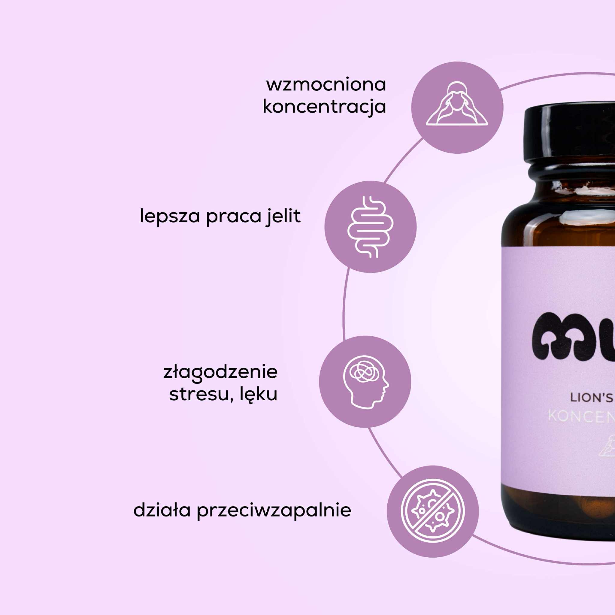Nie. Lion’s Mane nie działa jak kofeina – poprawia klarowność, nie „nakręca”.