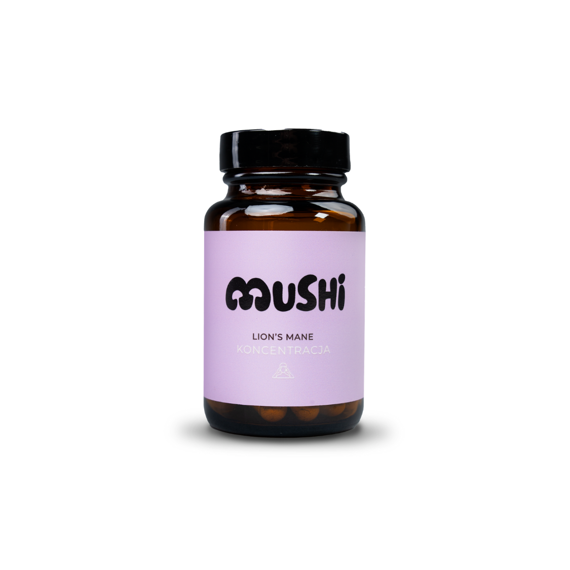 Lion’s Mane (Hericium erinaceus) – ekstrakt z owocników, standaryzowany na 30% polisacharydów. To klucz, bo polisacharydy są odpowiedzialne za wsparcie neuronów, funkcje poznawcze i ogólne doenergetyzowanie mózgu. Lion’s Mane jest jednym z najbardziej obiecujących naturalnych składników wspierających układ nerwowy.